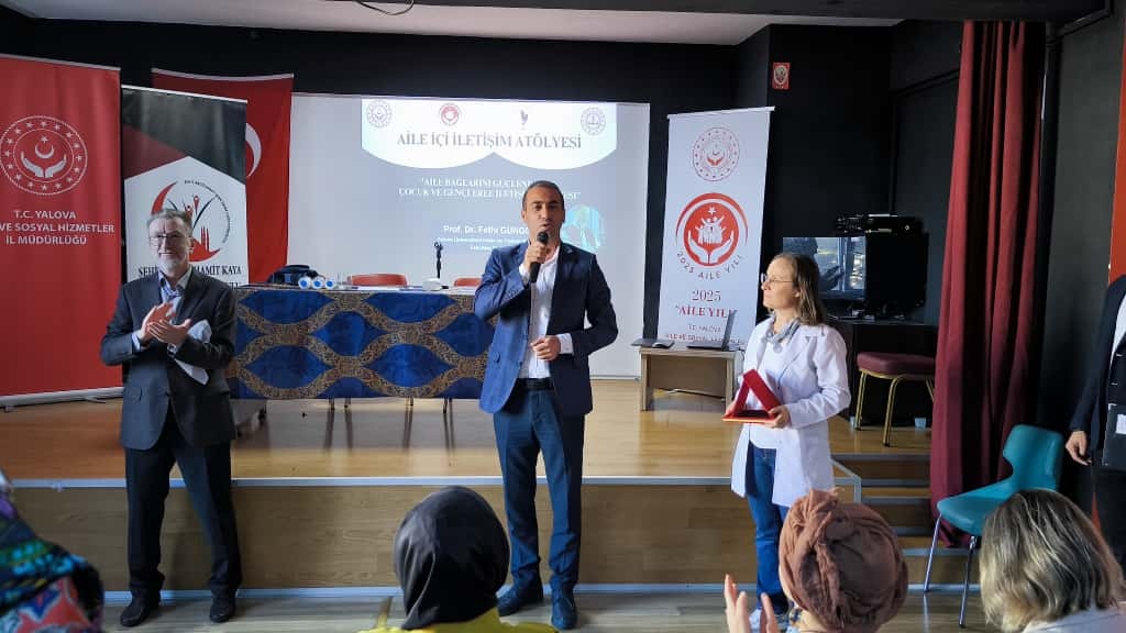 Cumhurbaşkanlığımızın himayelerinde ve Aile ve Sosyal Hizmetler Bakanlığı’nın koordinasyonunda hazırlanan "Ailenin Korunması ve Güçlendirilmesi Vizyon Belgesi ve Eylem Planı" kapsamında Yalova İl Aile ve Sosyal Hizmetler İl Müdürlüğü öncülüğünde, Yalova Üniversitesi İnsan ve Toplum Bilimleri Fakültesi Dekanı Prof. Dr. Fethi GÜNGÖR’ün katılımıyla "Aile Bağlarını Güçlendirme: Çocuk ve Gençlerle İletişim Atölyesi" konulu semineri İlçe Milli Müdürümüz Zeki Sitar ın teşrifleriyle okulumuz konferans salonunda yapıldı. Seminerimize çok sayıda velimiz katıldı.